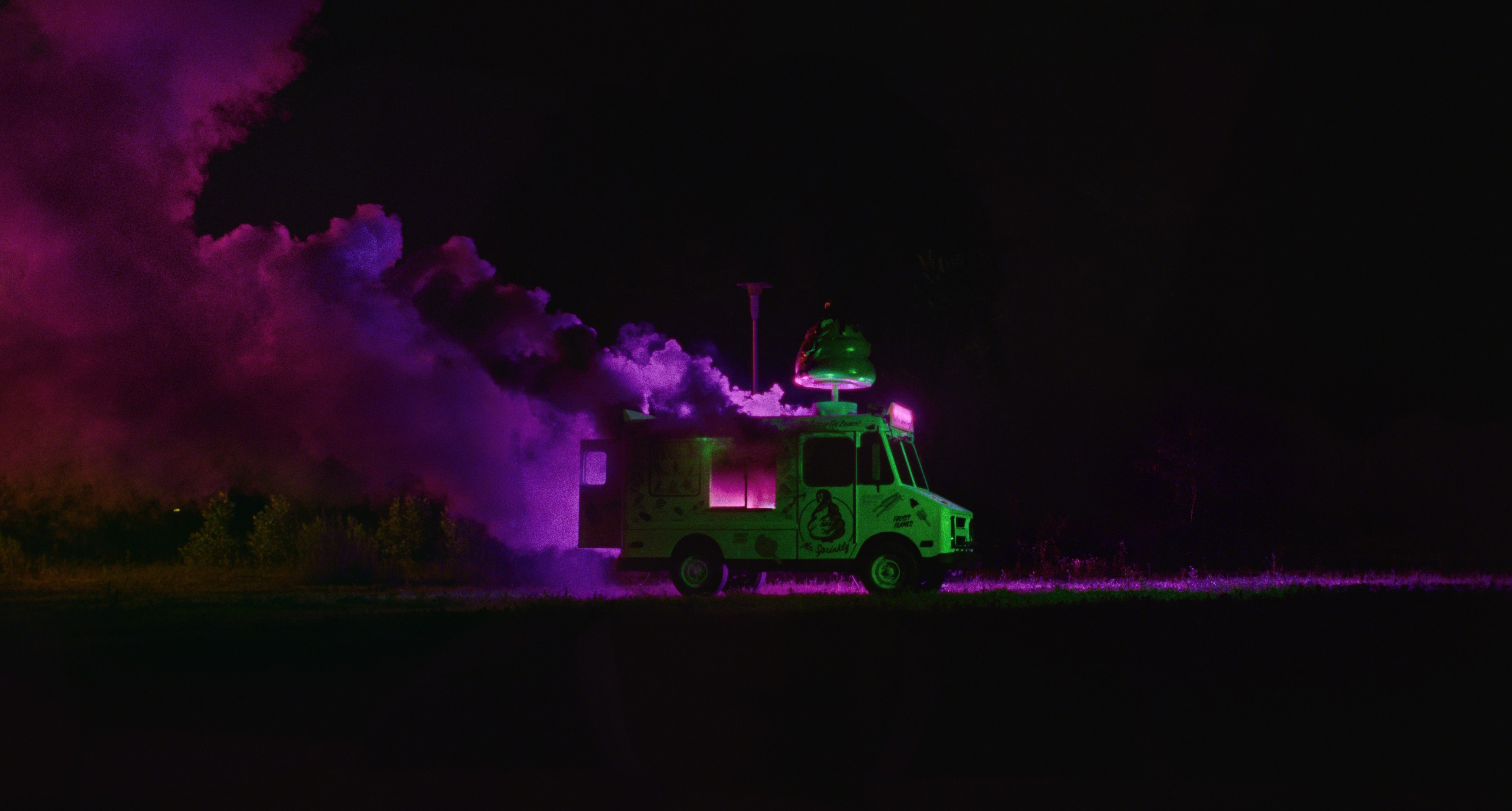 I Saw the TV Glow se asienta sobre la hibridación, el mestizaje, desplazándose sin prejuicios entre múltiples géneros audiovisuales, no sólo cinematográficos, de la ficción adolescente al terror sobrenatural, pasando por la ciencia-ficción a lo Power Rangers o Super Sentai, series muy presentes en el aspecto analógico de los monstruos de la película, creados a base de maquillaje y efectos especiales. Como ya sucedía en We’re All Going to the World’s Fair, la nueva película de Schoenbrun presenta también una mezcolanza estética cercana al pastiche, con el look analógico y colorido de The Pink Opaque, la serie dentro de la película, imbricándose con imágenes de la vida cotidiana de Owen y Maddy, góticas y tenebrosas como las fotografías del norteamericano Gregory Crewdson, especialista en convertir las zonas residenciales estadounidenses en espacios abiertos a lo siniestro. Las luces y colores fluorescentes que bañan los rostros y cuerpos de los protagonistas (viendo la televisión, en un centro de ocio infantil), o la cámara flotante que sigue a Owen por el instituto al ritmo de una etérea canción pop (la excelente banda sonora, con temas de Phoebe Bridgers o Alex G., emula el sonido de algunas bandas indies de los noventa), son ejemplos de una propuesta visual hipnótica, espectral y voluntariamente artificiosa.